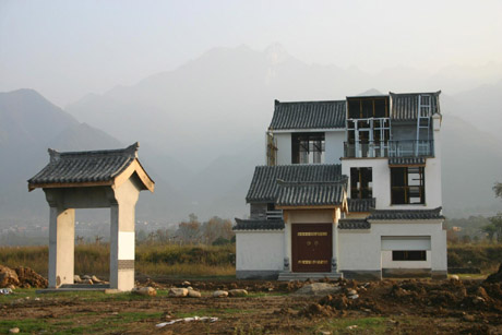 2006年6月,陜西省政府責(zé)成西安市和戶(hù)縣政府有關(guān)部門(mén)嚴(yán)格監(jiān)管,防止項(xiàng)目用地改變用途。但當(dāng)年9月,開(kāi)發(fā)商就在規(guī)劃項(xiàng)目區(qū)建成一座獨(dú)門(mén)獨(dú)院別墅樣板房進(jìn)行促銷(xiāo)。這是當(dāng)時(shí)用于促銷(xiāo)的樣板房(2006年10月攝)。新華社記者:張軍 攝 |