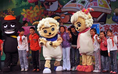以風靡全國的動畫片《喜羊羊與灰太狼》為基礎創(chuàng)作的動漫人偶劇《喜羊羊與灰太狼之記憶大盜》日前在中國木偶劇院演出12場,深受觀眾歡迎。本報記者:孔卉