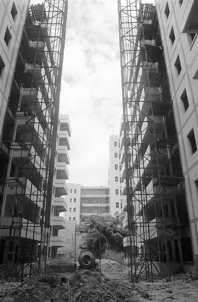 海南省?谑协偵絽^(qū)農(nóng)業(yè)局2棟64套職工宿舍集資樓從2005年開(kāi)建至今仍未竣工。新華社記者:陳穎