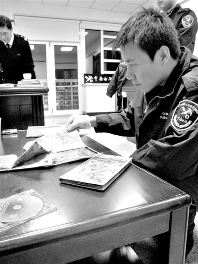 2009年6月2日,大連海關(guān)成功破獲一起利用CD碟片藏匿毒品,通過國際郵遞渠道交貨走私海洛因的案件。這份快件三本碟片包裝精美,尺寸適當(dāng),且沒有拆封痕跡。當(dāng)緊裹在CD碟外盒的紙制外包裝被緝私警察切開后,幾個(gè)被壓得薄薄的藍(lán)色塑料袋赫然顯現(xiàn),大量白色粉末均勻地鋪在袋子里。經(jīng)檢驗(yàn),白色粉末為毒品海洛因,共計(jì)247.37克。(孫耘)