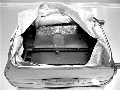 今年6月6日中午11點(diǎn)40分許,從胡志明市飛來深圳寶安機(jī)場(chǎng)的ZH9872航班抵達(dá),在對(duì)一名越南籍中年男性旅客的行李箱進(jìn)行破壞性檢查后,海關(guān)關(guān)員發(fā)現(xiàn)行李箱夾層內(nèi)有一“方形”扁平物體,是一塊用銀色錫紙包裝的可疑物品,錫紙外面沾滿了辣椒粉!錫紙內(nèi)包裝的物品為散發(fā)出醋酸味的粉末,經(jīng)鑒定,可疑粉末為高純度海洛因,共計(jì)906克。