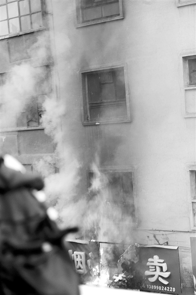 7月5日,烏魯木齊街頭的一家商店被縱火后燃燒。 新華社記者沙達(dá)提