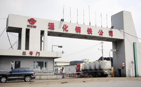 這是7月26日拍攝的吉林通鋼集團通化鋼鐵股份公司大門。新華社記者