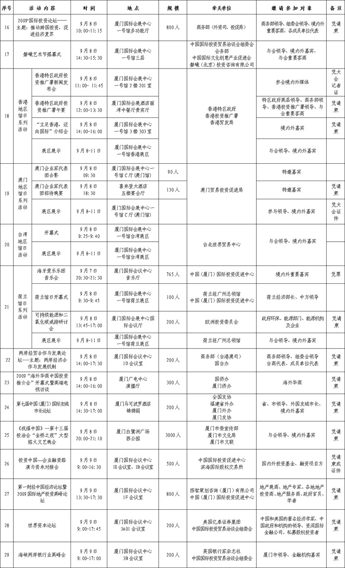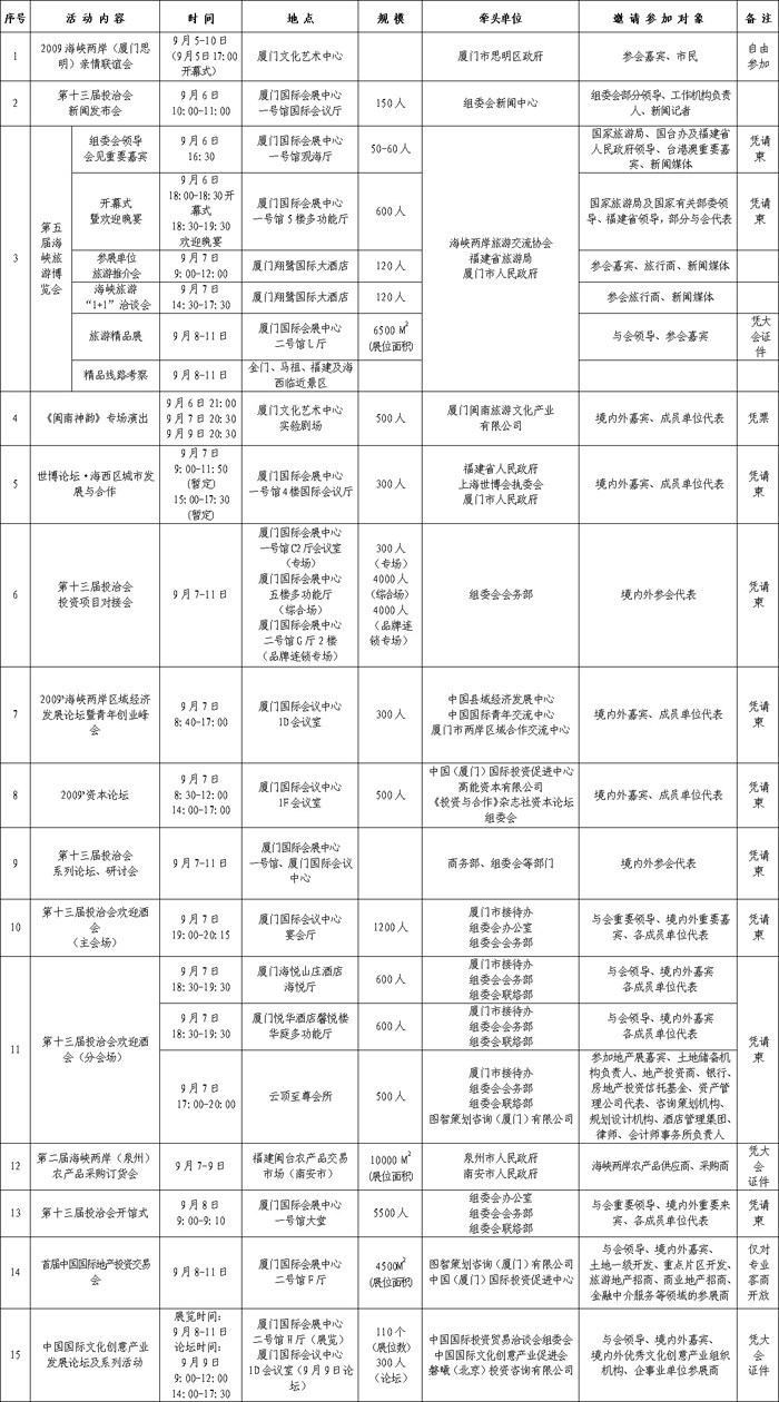第十三屆投洽會(huì)重要活動(dòng)一覽會(huì)[表]
