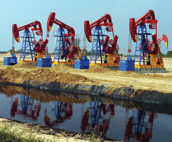 慶陽市西峰區(qū)境內(nèi)的一處采油井。本報記者 韓傳號/攝 |