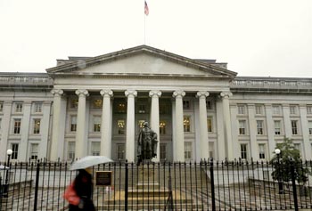 10月15日位于華盛頓的美國(guó)財(cái)政部外景。當(dāng)日,美國(guó)財(cái)政部在一份提交給國(guó)會(huì)的有關(guān)國(guó)際經(jīng)濟(jì)和匯率政策報(bào)告中稱(chēng),在今年上半年的報(bào)告期限內(nèi),沒(méi)有發(fā)現(xiàn)包括中國(guó)在內(nèi)的美國(guó)的主要貿(mào)易伙伴存在操縱貨幣匯率行為以獲取不公平貿(mào)易優(yōu)勢(shì)。但美國(guó)財(cái)政部仍宣稱(chēng)人民幣幣值存在低估,稱(chēng)美方對(duì)人民幣幣值穩(wěn)定及中國(guó)外匯儲(chǔ)備增加表示“高度關(guān)注”,其言辭比以往報(bào)告顯得更為嚴(yán)厲。新華社記者