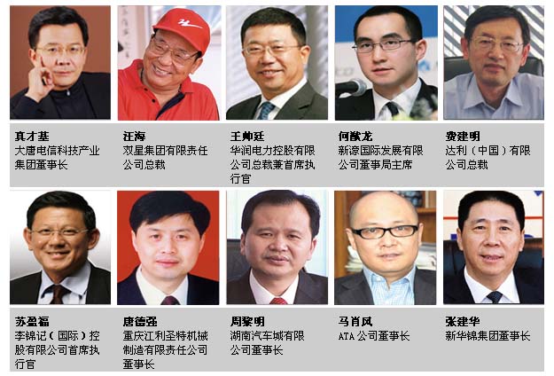 王亞奇 長江經(jīng)濟聯(lián)合發(fā)展集團董事長 謝超群 雅天妮中國有限公司董事局主席 陳健發(fā) 星藝堂國際集團有限公司主席 張全有 內(nèi)蒙古碩高生物科技有限責任公司董事長 谷士井 北京東風(fēng)世景模板有限公司董事長