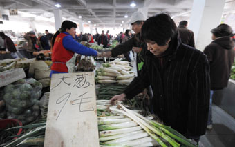 “最近漲價(jià)了,土豆現(xiàn)在八毛五一斤! “又漲價(jià)了?八毛吧。” “不行,你下次來都得九毛五了! 12月28日,北京新發(fā)地市場(chǎng)。商戶李大嫂將三大袋土豆摞在臺(tái)秤上,一邊看著斤數(shù),一邊和前來購買土豆的餐館老板進(jìn)行價(jià)格“談判”。李大嫂告訴《經(jīng)濟(jì)參考報(bào)》記者,受天氣影響,估計(jì)到過年時(shí)每袋還得漲一塊錢。 在新發(fā)地市場(chǎng),其它蔬菜價(jià)格也是紛紛上漲,有一些商戶向記者抱怨:“價(jià)格高了,賣不動(dòng)了”。據(jù)新發(fā)地市場(chǎng)統(tǒng)計(jì)部負(fù)責(zé)人劉通介紹,受11月份兩次強(qiáng)降雪、降溫天氣的影響,北京新發(fā)地市場(chǎng)的蔬菜加權(quán)平均價(jià),11月上漲36.31%。12月份漲勢(shì)雖然有所減緩,截至12月28日也比月初上漲了18.78%。 超市里的菜價(jià)也是個(gè)“漲”字。在沃爾瑪超市宣武門店,馮大爺一邊在蔬菜柜臺(tái)前反復(fù)比較著價(jià)格,一邊告訴記者,他每過幾天就要到離家不遠(yuǎn)的這家大型超市來買東西,感覺蔬菜的價(jià)格漲得格外明顯。 這種現(xiàn)象并不只發(fā)生在北京。在農(nóng)業(yè)大省河北,唐山市路北區(qū)的中學(xué)教師王女士也明顯感受到近日蔬菜價(jià)格的上漲!爸暗氖卟藘r(jià)格還是有升有降,現(xiàn)在則是普遍小漲!彼f,“雖然平均下來漲幅不大,但還是能明顯感覺得到! 王女士拿出本月底和11月底的兩張購物小票對(duì)比著告訴記者,以大白菜為例,上個(gè)月的價(jià)格是4毛錢一斤,現(xiàn)在漲到了1塊錢。茄子漲得更快,從每斤3塊錢漲到了5塊錢。 除了蔬菜之外,糧、油、肉、蛋、奶等老百姓餐桌上不可或缺的農(nóng)副產(chǎn)品的價(jià)格也紛紛上漲。記者從北京新發(fā)地市場(chǎng)了解到,大米漲價(jià)已經(jīng)有20天左右,50斤的新大米價(jià)格上漲了10元;包裝食用油的價(jià)格也有所上漲;豬肉價(jià)格更是從11月份大雪開始漲起,到現(xiàn)在一直沒降下來,每斤大約上漲1元。 即使是產(chǎn)地,價(jià)格也沒能穩(wěn)住。在養(yǎng)豬大省湖南,益陽市南縣連心小區(qū)住戶彭先生告訴記者:“豬肉從11月底差不多8塊5(一斤)的樣子,現(xiàn)在已經(jīng)漲到10塊了! 奶制品的漲價(jià)最近也被推到了“風(fēng)口浪尖”:光明牛奶已經(jīng)率先調(diào)價(jià),雀巢也即將從元旦開始漲價(jià)。中國人民大學(xué)利樂奶業(yè)經(jīng)濟(jì)研究中心常務(wù)副主任張利庠對(duì)《經(jīng)濟(jì)參考報(bào)》記者預(yù)測(cè),由于成本高、市場(chǎng)需求量大、通脹預(yù)期大,現(xiàn)在眾多奶企雖然沒有跟進(jìn)漲價(jià),但全行業(yè)在春節(jié)前后全面漲價(jià)將是必然的。 據(jù)農(nóng)業(yè)部全國農(nóng)產(chǎn)品批發(fā)價(jià)格指數(shù)和“菜籃子”產(chǎn)品批發(fā)價(jià)格指數(shù)顯示,12月份價(jià)格指數(shù)的走勢(shì)一路上揚(yáng),截至12月29日的月度平均值分別比上一個(gè)月上漲了5.2%和6.3%,比2008年12月份上漲了7.3%和8.3%。