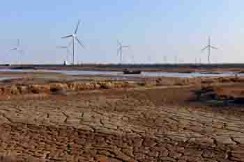 渤海灣畔的大唐東營風(fēng)力發(fā)電項(xiàng)目首批風(fēng)機(jī)已并網(wǎng)發(fā)電。新華社發(fā) |