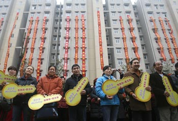 武漢市最大的保障性住房項目百步亭社區(qū)悅秀苑、景蘭苑交房工作日前正式啟動。該項目包括5263套經(jīng)濟適用房和194套廉租房。新華社發(fā) |