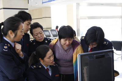 以優(yōu)化納稅服務(wù)為核心的新征管模式改革,最近在福建漳浦縣國(guó)稅局成功運(yùn)行。這是繼漳州市薌城區(qū)國(guó)稅局之后,該省又一個(gè)試點(diǎn)單位成功運(yùn)行新征管模式。圖為漳浦縣國(guó)稅局辦稅服務(wù)大廳窗口人員正在演示新征管業(yè)務(wù)流程。