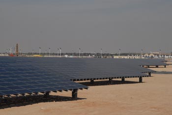 石油王國(guó)致力于新能源發(fā)展的消息,吸引了全球的目光。1月18日至21日在阿布扎比舉行的第三屆世界未來(lái)能源峰會(huì)上,包括尚德太陽(yáng)能、英利綠色能源控股、中電電氣和國(guó)電晶德等在內(nèi)的總計(jì)42家中國(guó)太陽(yáng)能制造企業(yè)強(qiáng)勢(shì)登場(chǎng),中國(guó)企業(yè)展臺(tái)面積超過(guò)1000平方米。 阿聯(lián)酋乃至整個(gè)中東的太陽(yáng)能發(fā)電市場(chǎng)商機(jī)有多大?《經(jīng)濟(jì)參考報(bào)》記者在阿布扎比展會(huì)現(xiàn)場(chǎng)采訪了多位中國(guó)太陽(yáng)能公司的市場(chǎng)代表和企業(yè)高管。