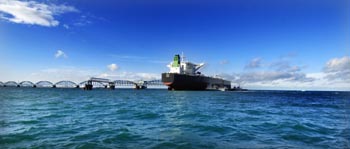 一艘油輪?吭谘笃指30萬噸級原油碼頭。新華社記者 趙穎全 攝