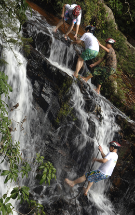 游客在海南省保亭呀諾達(dá)景區(qū)參加探險游。新華社記者 趙穎全/攝 |