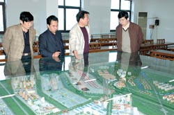 靜?h委書記孫文魁(右一)及副縣長陳顏忠(左一)和唐官屯鎮(zhèn)黨委書記趙強(右二)、鎮(zhèn)長趙洪軍(右三)共同研究唐官屯物流園規(guī)劃。 |