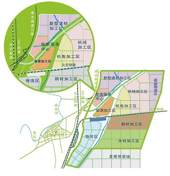 依托縣域鋼鐵產(chǎn)業(yè)基礎(chǔ),重點發(fā)展以下三種精深加工:一是扁平材深加工;二是以板帶材為原料的焊管深加工以及焊管產(chǎn)品的加工;三是長材的深加工,以加工為龍頭、物流為配套,形成“鋼材物流-鋼材深加工-成品物流-客戶”的產(chǎn)業(yè)鏈系。 充分利用鐵路運輸資源,實現(xiàn)與周邊木業(yè)生產(chǎn)集散地的有效對接,引進專業(yè)廠家和成套設(shè)備,對木材進行專業(yè)化、系列化生產(chǎn)與加工,擴大市場覆蓋面,全面提升木材加工的附加值。重點生產(chǎn)木線、復(fù)合板、膠合板、中密度板、細木工板等產(chǎn)品,發(fā)展門業(yè)、櫥柜、家具等木材深加工企業(yè)。以加工為龍頭、物流為配套,形成“木材物流-木材深加工-成品物流-客戶”的產(chǎn)業(yè)鏈系。 充分利用鐵路、公路運輸資源,以節(jié)能環(huán)保建材為發(fā)展方向,突出低成本、高附加值產(chǎn)品的生產(chǎn),適應(yīng)市場需求,擴大生產(chǎn)規(guī)模,加大產(chǎn)品開發(fā)深度,提高經(jīng)濟效益。重點發(fā)展玻璃制品、鋁合金型材、保溫節(jié)能材料、玻璃鋼制品、新型墻體材料等產(chǎn)品。以加工為龍頭、物流為配套,形成“建材物流-建材加工-成品物流-客戶”的產(chǎn)業(yè)鏈系。 大力發(fā)展上下游產(chǎn)業(yè)鏈經(jīng)濟,企業(yè)之間相互合作,互為支撐,鼓勵建設(shè)集約、經(jīng)濟、高效的工業(yè)產(chǎn)業(yè)體系。由物流企業(yè)經(jīng)鐵路、公路向區(qū)內(nèi)加工企業(yè)提供鋼材、木材等材料,由區(qū)內(nèi)加工企業(yè)制造相關(guān)產(chǎn)品,再由物流企業(yè)向本地區(qū)及周邊地區(qū)的客戶提供物流配送服務(wù)。客戶需求信息→信息網(wǎng)絡(luò)平臺→物流(公路、鐵路戰(zhàn)略卸點)→鋼材材料(木材材料)→工業(yè)深加工→上下游企業(yè)→工業(yè)產(chǎn)品→終端消費客戶。 充足的倉儲用地,現(xiàn)代化的基礎(chǔ)設(shè)施建設(shè),將會在唐官屯加工物流區(qū)形成現(xiàn)代化的倉儲區(qū),為區(qū)內(nèi)的企業(yè)及周邊地區(qū)的廣大客戶提供物資倉儲服務(wù)。 以客戶需求為導(dǎo)向,強調(diào)公共型配送、共同型配送和專業(yè)化配送的有機結(jié)合與協(xié)調(diào)發(fā)展。整合物流配送資源,降低營運成本,提高獲利能力。通過物流信息平臺的建立,擴大配送服務(wù)半徑和貨物集散空間。