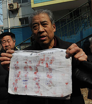 享園小區(qū)居民向記者展示“不同意拆遷人員名單”新華社記者 王民