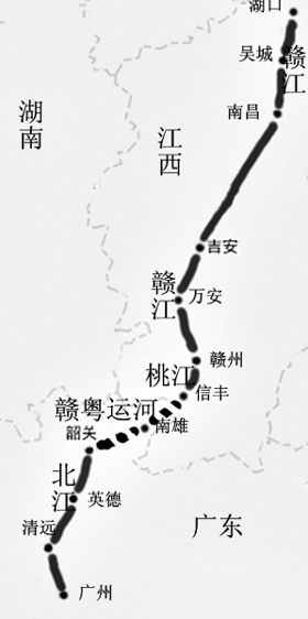 在2009年珠江航務(wù)管理局的規(guī)劃中,贛粵運河將自長江的江西省湖口縣起,穿過鄱陽湖入贛江,沿贛江一路向南過贛州市到桃江,過廣東和江西的交界處分水嶺,入廣東湞江上游的孔江水庫,然后沿湞江而下,經(jīng)南雄到韶關(guān),再沿北江干流經(jīng)英德、清遠至三水河口,入東平水道到達廣州,全長1282公里,其中江西境內(nèi)748公里,廣東省境內(nèi)534公里。整個航道規(guī)劃為三級航道,通航1000噸級的船舶。 “這事實上是把京杭大運河向南延伸到了廣東,增加了一條南北的大通道。”3月24日,珠江航務(wù)管理局珠江水系航運規(guī)劃辦公室副主任雍清贈在接受記者采訪時表示,從北京到廣東,這條運河將貫通黃河、淮河、長江、珠江等中國主要水系,對經(jīng)濟發(fā)展的促進作用不言而喻。 僅就廣東江西兩省而言,贛粵運河經(jīng)過的贛粵北、贛南、贛中都是相對較為貧困的老少邊窮地區(qū),運河的建成帶來的經(jīng)濟溢出效益有望改變這些地區(qū)的面貌。雍清贈表示,當(dāng)前廣東大力推進雙轉(zhuǎn)移戰(zhàn)略,將珠三角地區(qū)部分產(chǎn)能釋放到內(nèi)地,從綜合交通體系考慮,內(nèi)河航道運輸不暢顯然已經(jīng)成為實施這一戰(zhàn)略的瓶頸。 據(jù)估計,目前內(nèi)河航道單位噸公里的運輸成本約為鐵路的1/2、公路運輸?shù)?/5。但江西到廣東的水運基本不通。若要從水路運輸,必須從長江出海,再從珠江口進入珠三角地區(qū)。贛粵運河建成后,距離縮短到1200多公里,而預(yù)計每年的運力將可達到1000萬噸,相當(dāng)于新修了一條鐵路,而對環(huán)境的影響、土地資源的占用等都遠小于鐵路。 雍清贈還列舉了灌溉沿途缺水地區(qū)、減少北江的防洪壓力、增加水利發(fā)電等好處,“京杭大運河那么古老的運河經(jīng)過整治,現(xiàn)在發(fā)揮了很大的作用?梢韵胂筅M粵運河如果修通了,對經(jīng)濟的影響有多大!