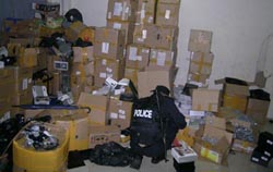 辦案緝私警察在某倉庫搜查。 |
