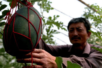 通過走產(chǎn)業(yè)化道路,柴達(dá)木綠化事業(yè)展現(xiàn)勃勃生機(jī)。這是農(nóng)民通過發(fā)展綠洲農(nóng)業(yè)建成的瓜果大棚。記者 侯德強(qiáng)/攝