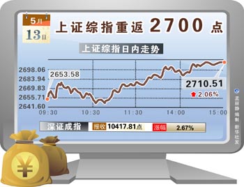 央行注資提振 滬指重上2700點(diǎn)關(guān)口 |