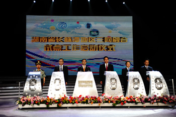 長株潭城市群三網(wǎng)融合試點(diǎn)工作方案16日在長沙正式拉開大幕。7月1日,國務(wù)院公布第一批12個電信網(wǎng)、廣播電視網(wǎng)和互聯(lián)網(wǎng)三網(wǎng)融合國家試點(diǎn)地區(qū)(城市),長株潭地區(qū)是試點(diǎn)中的唯一城市群。圖為啟動儀式現(xiàn)場,湖南省委書記周強(qiáng)按下啟動按鈕。新華社記者 李丹/攝 |