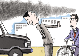 1月28日,江蘇省政協(xié)委員朱曉東騎自行車(chē)參加兩會(huì)時(shí),在賓館門(mén)口被門(mén)衛(wèi)拒絕進(jìn)入。朱曉東稱,“開(kāi)汽車(chē)到星級(jí)賓館,有人主動(dòng)、熱情為你引路,但你騎自行車(chē)卻根本進(jìn)不了門(mén)!保ㄒ(jiàn)1月29日《東方早報(bào)》)