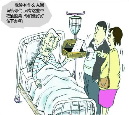 福建某股民張先生是個(gè)新股民,去年的10月份,在A股幾乎最高點(diǎn)時(shí),張先生到一家證券營業(yè)部開了股票賬戶。幾天之后,中石油的網(wǎng)上申購開始了。不過很不幸,他的1萬多元沒有申購到中石油的股票。大約1個(gè)多星期后,中石油價(jià)格已經(jīng)超過了48元,他趕緊照著屏幕上“買入價(jià)”掛了出去。但沒想到,中石油的股票以后就一路下跌,如今,他的交易賬戶的市值已經(jīng)從5000元縮水到1000元出頭。倔強(qiáng)的張先生決定那賬戶上的中石油不回本就堅(jiān)決不賣,無論需要多少年,甚至是留給自己的孫子也可以。