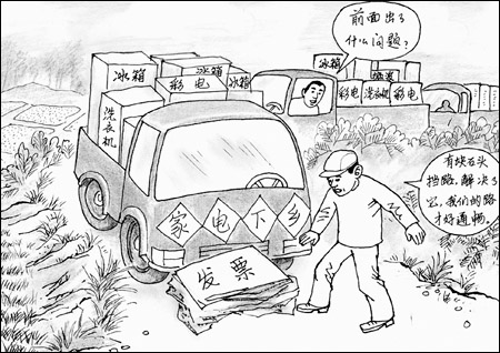 據(jù)《中國消費(fèi)網(wǎng)》報道,江西有些地方,愿意銷售下鄉(xiāng)家電的商店寥寥無幾,原因主要是很多家電商店不愿意開具發(fā)票,因?yàn)橐坏╅_具發(fā)票,銷售商幾乎無利可圖。目前在有些已開展家電下鄉(xiāng)活動的地方,這種現(xiàn)象并不鮮見。 有專家認(rèn)為,國家稅務(wù)總局應(yīng)印制全國統(tǒng)一的家電下鄉(xiāng)產(chǎn)品銷售發(fā)票,適當(dāng)減輕家電下鄉(xiāng)產(chǎn)品銷售的賦稅,充分調(diào)動銷售網(wǎng)點(diǎn)的銷售和服務(wù)積極性,才能讓更多的農(nóng)村消費(fèi)者享受到家電下鄉(xiāng)惠農(nóng)政策,達(dá)到擴(kuò)大內(nèi)需的目的。