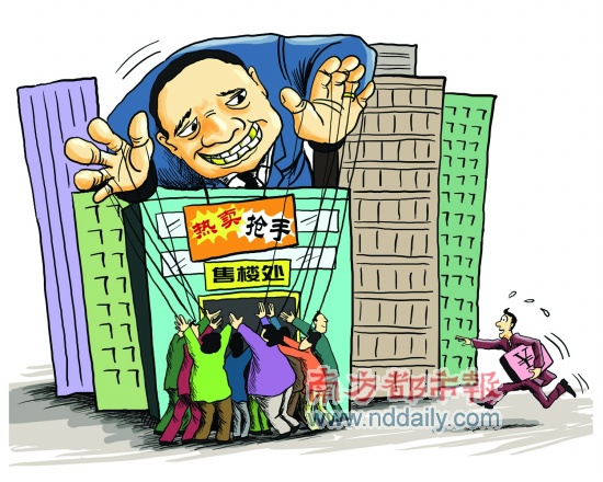 在北京市朝陽區(qū)東八里莊的一個(gè)居委會(huì)里,張大媽近日又開始忙起來了,同往年一樣,她又接受了東四環(huán)幾個(gè)待銷樓盤的邀約,組織一批老年人到幾個(gè)售樓中心“簽約”,一天管吃喝還凈掙50元。據(jù)介紹,她們有時(shí)還要到國貿(mào)春季房展會(huì)上演“訂房”,前臺(tái)簽單,后臺(tái)拿錢走人。(《人民日?qǐng)?bào)》4月6日)
