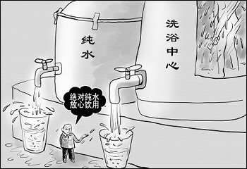 據《揚州日報》報道,當地一家洗浴中心花重金進口國外凈水設備,打出“可以喝的洗澡水”的廣告,經理更是當著記者喝下了一杯凈化過的洗澡水,并稱他們的員工平時飲用的就是洗澡水。洗澡水縱然能喝,仍然是用來洗澡的。此種矯枉過正的經商之道,實在叫人不敢恭維。