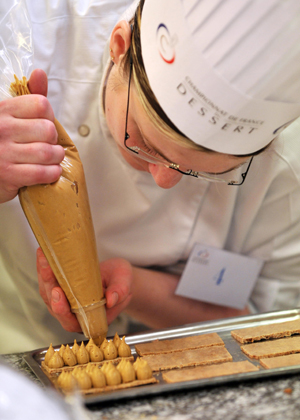 文華東方海德公園酒店(MandarinOrientalHydePark)位于倫敦市中心著名的海德公園旁,百年的歷史,英國傳統(tǒng)家居的裝修風(fēng)格和地道的菜品成為他們的招牌。酒店餐廳提供的傳統(tǒng)英式下午茶也隨即成為來到這里的客人體驗英國傳統(tǒng)文化的絕好選擇。 英式下午茶所使用的茶以“紅茶中的香檳”——大吉嶺紅茶為首選,而發(fā)展至今以各種茶葉混合制成的伯爵茶也成為顧客常常選用的茶品。英國人比較喜愛喝的茶品有三種:口味較重的混合茶是搭配比較甜潤的糕點;而味道很好的錫蘭茶則適合與黃油餅干或重口味的三明治一起食用;產(chǎn)自印度東北部的大吉嶺茶清淡可口,有果味與花茶的特征,很適合與有代表性的下午茶糕點——海綿蛋糕搭配。 英式下午茶的甜品種類繁多,而最著名的要數(shù)司康餅(Scone),文華東方海德公園酒店的糕點主廚Graham先生就帶我們到廚房去參觀了司康餅的出爐過程。 司康餅,是蘇格蘭人的快速面包(QuickBread),它的名字是由一塊具有悠久歷史的、被稱為司康之石(StoneofScone)的地方得來的,那里正是蘇格蘭皇室的加冕之地。傳統(tǒng)的司康餅是作成三角形的,以燕麥為主要材料,將面團放在煎餅用的淺鍋中烘烤。而流傳到現(xiàn)在,面粉成為了其主材,形狀也不再是一成不變的三角形,可以作成圓形、方形等各式形狀,還可加入葡萄干、果仁等一起烘焙。司康餅的制作,最關(guān)鍵是發(fā)酵過程和烘烤過程。好的司康餅看起來外表很硬,感覺很甜膩,吃起來卻無比松軟,搭配黃油和果醬,清爽可口。 司康餅的吃法也頗為講究,一種吃法是直接吃,另一種吃法則是與草莓醬或濃縮奶油一起食用“司康餅一定要趁熱食用,剛從烤箱端出來的,用刀子切開,涂抹上奶油和草莓醬,熱氣讓奶油微微融化,一口咬下去,果醬的甜潤融合著奶油的馨香,配上一口紅茶,與溫軟的司康餅在口中融化,味蕾在那一刻即會得到充分的滿足。”Graham說。