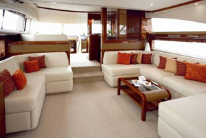 Princess62全長(zhǎng)19.3米,寬闊的船體承載了巨大的內(nèi)部空間。位于底層的休息區(qū)擁有包括主臥在內(nèi)的四個(gè)臥室,精致的船艙設(shè)計(jì)可同時(shí)容納8人居住,如有需要還可在船尾加配一個(gè)船員艙。臥室旁均配有獨(dú)立衛(wèi)生間和浴室,注重私密性,使用方便。中后部的主人房和前部的第一客臥艙分別在一側(cè)和頂部設(shè)置了窗口,讓人可隨時(shí)隨地欣賞到窗外海景和天空。房間內(nèi)部裝飾典雅、高貴,精心排列的射燈布局更為房間營(yíng)造出溫馨柔和的氛圍。 與以往的型號(hào)相比,Princess62配以流線加速、高巡航速度以及容易上手的導(dǎo)航控制臺(tái),實(shí)現(xiàn)了航海進(jìn)程中極致的操控享受。