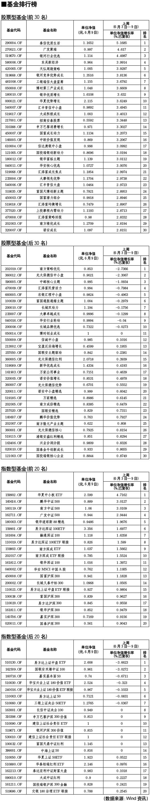 基金排行榜[2010-06-11]