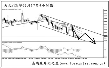 ▲美元兌瑞郎未能繼續(xù)向上挑戰(zhàn)周線圖阻力1.1965,自高位下跌回調(diào),力度逐漸加大。匯價(jià)運(yùn)行在一個(gè)下跌通道之中,下方首要面臨的支撐在日線圖均線系統(tǒng)的依托位1.1200,預(yù)計(jì)美元兌瑞郎在此位置將遭遇一定的反復(fù)性,短線操作先以做空為主思路。