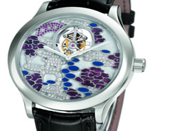 梵克雅寶午夜東方花園陀飛輪鉑金腕表在珍貴寶石的烘托下,面盤上恬靜神秘的東方園林通過(guò)兩種琺瑯技法呼之欲出。蛋面磨光琺瑯和大明火琺瑯相輔相成,勾繪出東方園林的迷人神韻,m瑯技藝要求超高的溫度和卓越的工藝。這款限量版鉑金腕表搭配鱷魚(yú)皮表帶,僅售8枚。表殼:鉑金材質(zhì),圓形表殼,藍(lán)寶石水晶底蓋,可顯示機(jī)芯運(yùn)轉(zhuǎn)。表盤:大明火和蛋面磨光琺瑯,鑲嵌鉆石、藍(lán)寶石,棒形指針,不設(shè)時(shí)間刻度。