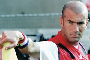 在法國,所有法國人都會告訴你,齊達內(nèi)超越了人類球星的定義,至少他是半人半神。對于這個極度缺乏勇氣和男性氣概的國家來說,齊達內(nèi)是他們渴望已久的英雄式人物,一個活生生的上帝。如果說,馬拉多納是因為自身演繹的諸如“連過五人”“上帝之手”等超出人類理念的不可思議現(xiàn)象而成為足球上帝,齊達內(nèi)則是因為他踢球時所具備的美感,超越了以往的所有球員。前聯(lián)合國秘書長安南將其定義為,“他是人類的文化遺產(chǎn),是一位偉大的藝術(shù)家。齊達內(nèi)每一次觸球都帶給觀眾極大的視覺享受!彼恼信苿幼鳌榜R賽回旋”像是步伐復(fù)雜但動作輕盈的芭蕾舞蹈。法國人終于在足球上挖掘出了最讓這個民族引以為傲的藝術(shù)美感,這完全是齊達內(nèi)一個人的功勞。 在齊達內(nèi)的鼎盛時期,他是法國隊最具功效的球員。曾經(jīng)有人笑稱,當(dāng)時的法國隊是“齊達內(nèi)和10個為他服務(wù)的仆人”。法國隊內(nèi)習(xí)慣將所有問題都交給他解決,過人、傳球、助攻、射門,他無所不能。在他以核心身份參加的第一屆世界杯上,便帶領(lǐng)法國隊獲得了冠軍。此后,齊達內(nèi)又帶領(lǐng)法國隊獲得了2000年歐洲杯冠軍,以及2006年世界杯亞軍。而在他之前,法國最著名的球星普拉蒂尼,參加了三屆世界杯卻從未獲得過冠軍。 在齊達內(nèi)最鼎盛的時期,有關(guān)他的報道中,法國媒體總是毫不吝嗇地奉上諸如“一個國王叫做齊達內(nèi)”“球場上的上帝”之類的標(biāo)題。同時他接連出版了兩本自傳,分別名為《齊達內(nèi),一個審慎的國王》(2002年),以及《一個想成為平民的上帝》(2006年)。一場轟轟烈烈的齊達內(nèi)造神運動開始了。與所有造神運動相似的是,齊達內(nèi)被塑造成了一個不食人間煙火的神人。不抽煙喝酒,與緋聞絕緣,在公眾面前總是彬彬有禮,充滿藝術(shù)氣質(zhì)……在1998年法國隊加冕世界冠軍之后,有攝影記者拍到了他手里拿著雪茄在夜總會里喝酒的照片,但最終,這些照片被封殺了!霸谔岢隹怯媱澲,我們突然接到一個匿名電話,警告我們不能刊出這些照片!饼R達內(nèi)成了這個國家唯一的神。