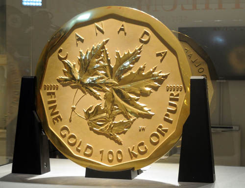 “楓葉”金幣日前在奧地利首都維也納多羅瑟姆拍賣行展出。 當(dāng)天,這枚世界最大金幣被一家西班牙貿(mào)易公司以327萬(wàn)歐元的價(jià)格買走。這幣金幣于1997年在加拿大用99.999%的純金鑄造,直徑53厘米,重達(dá)100公斤,是迄今世界上最大金幣,并被載入《吉尼斯世界紀(jì)錄年鑒》。