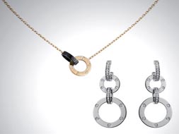 雙環(huán)恒久系列賦予了絕美象征:無論是項(xiàng)鏈、手鏈,還是耳墜,都將愛的美好與溫情誠(chéng)心寓于牽手雙環(huán)之中。愛的承諾化身緊扣的雙環(huán),如精致的標(biāo)點(diǎn),嵌入愛人們的喃喃細(xì)語中。 黑色高科技精密陶瓷與璀璨奪目的鉆石和熠熠生輝的玫瑰K金巧妙融合,奪目的光澤呼應(yīng)低調(diào)的啞光,明暗對(duì)比之下,深邃自如的氣質(zhì)傾心流出;而在閃亮的鉆石與白K金的相互映襯下,