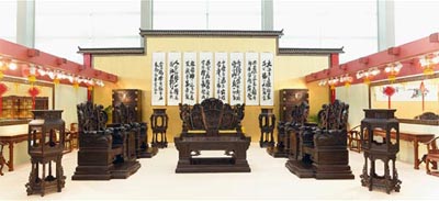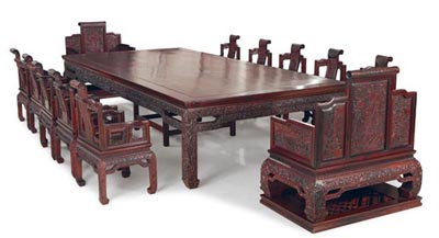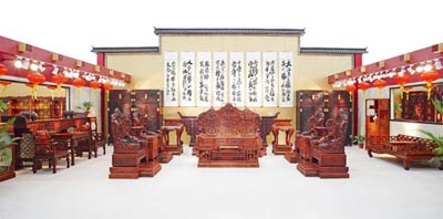 “江山多嬌”、“華夏盛世”、“福滿乾坤”等大型藝術(shù)雕刻紅木家具尤為引人矚目。2002年完成的“江山多嬌”大型紅木沙發(fā)總長22.12米、高2.8米、深3.11米,所需匠師300余人,八年精心打造。在設(shè)計上以中國傳統(tǒng)工藝文化為基礎(chǔ),用現(xiàn)代人的理念并以美學、力學、工藝學來大膽引古創(chuàng)新。整套沙發(fā)圖案內(nèi)容豐富、氣勢磅礴,開啟紅木大型雕刻藝術(shù)家具創(chuàng)造之先河,并于在2006年獲得了大世界吉尼斯之最!叭A夏盛世”整套大型藝雕組合共有作品二十件,其中有一張百龍精雕大桌,十二張錦繡山河大寶座,兩個精雕大花幾組合而成。整個作品立意高遠,匠心獨具。寓意祖國國富民強、民族振興。百龍大桌由百條騰龍精雕制作而成,每條龍的形態(tài)各異、姿態(tài)萬千。十二張錦繡山河大寶座繪有祖國三十多個省市名勝古跡。整套作品由百余名木工和雕刻大師歷時四年多而完成。《福滿乾坤》是一套用海南黃花梨制作的大型藝術(shù)沙發(fā),從五十多噸上等的海南黃花梨中精選佳材精制而成。是目前世界上用香枝木選材最大、最多、最精,設(shè)計思想、理念、造型、工藝、實用功能于一身的最具特色的古典與創(chuàng)新相結(jié)合的精品,大制作中的極品。 近幾年來由于受到黃花梨、紫檀等原材料的價格和來源枯竭等因素影響,大型高檔仿古家具交易量較少,這次匯集如此眾多大型紅木家具舉行拍賣,必將在紅木家具市場上引起新一輪的交易熱。業(yè)內(nèi)人士稱,考慮到目前紅木原材料上漲以及人們對紅木家具的關(guān)注度增加等因素,加上這批紅木家具的高質(zhì)量,最終成交額將穩(wěn)超市場價值。
