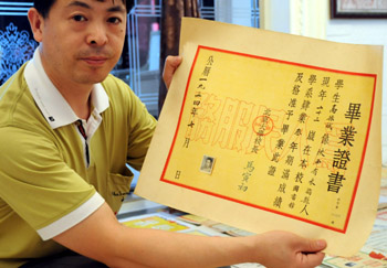 沈陽(yáng)一收藏家展出中國(guó)百年來(lái)各類(lèi)畢業(yè)證