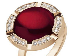 Class One Croisiere 紅榴石系列以18K粉紅金制成,鑲以圓形切割之美鉆和1顆圓拱形切割之紅榴石。時尚、優(yōu)雅而又神秘的石榴紅色,如同美麗的落日余暉,給人以溫暖的力量。有別于之前多采用煙晶的作品,此次推出的新品選用暖色系寶石,并且增加了粉金款式。