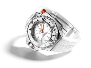 歐米茄的潛航者型追求永遠(yuǎn)的推陳出新,今年全新發(fā)布的歐米茄Ploprof白色款式,可謂專為潛水者設(shè)計,滿足使用者全部需求。Ploprof潛水表獨(dú)具特色的表圈釋放安全按鈕位于2時位置,按下按鈕,表圈朝向任意方向,然后緊緊鎖住,此步驟以確保潛水過程中不會發(fā)生意外轉(zhuǎn)動。除此之外,帶有鍍鉻阿拉伯?dāng)?shù)字的白色雙向鎖定表圈,防水深度可達(dá)1200米,與磨砂打磨的網(wǎng)孔狀防鯊表鏈或白色橡膠表帶常伴左右。