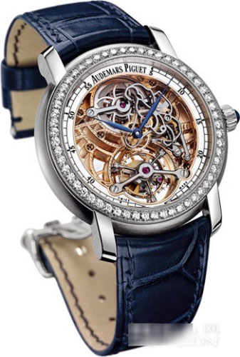 愛彼表廠特別挑選珍貴的鉑金來(lái)制作這枚陀飛輪鏤空腕表的表殼,精致的表圈及鉑金折迭表扣共鑲嵌84顆閃耀美鉆,彰顯腕表的高貴大氣。為盡善盡美,制表師更在表冠處鑲嵌了一枚半圓球形藍(lán)寶石。而表盤唯美的全鏤空設(shè)計(jì)使精密的機(jī)芯和每一個(gè)精心制作的零件都盡收眼底。腕表采用藍(lán)鋼指針,表圈為阿拉伯?dāng)?shù)字時(shí)標(biāo)和軌道分鐘刻度,雅致經(jīng)典,同時(shí)也讓佩戴者能更輕松地讀取時(shí)間。詩(shī)意的鏤空設(shè)計(jì)、珍貴的材質(zhì),唯有挑戰(zhàn)地心引力的精密陀飛輪機(jī)芯才能與之相配。