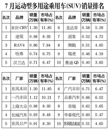 7月運(yùn)動(dòng)型多用途乘用車銷量排名