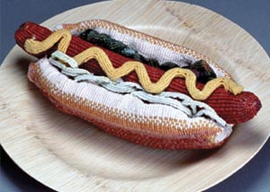 Ed Bing Lee 花費(fèi)了25個年頭來完善他的編織技藝,現(xiàn)在他可以運(yùn)用繩條材料創(chuàng)作任何一種事物,而這組作品利用的是條條絨線,創(chuàng)造針織衫般的美食。