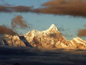 南迦巴瓦曾經(jīng)被中國國家地理評為中國最美的雪山之一,位于西藏南部林芝地區(qū)雅魯藏布江大拐彎附近,是喜馬拉雅山東端最高峰,海拔7756米。高度排在世界最高峰行列的第15位,是7000米級南迦巴瓦山峰中最高的。巨大的三角形峰體終年積雪,云遮霧蓋,難以見其真容。南迦巴瓦峰也叫那木卓巴爾山,藏語意為“天上掉下來的石頭”,有“眾山之父”之稱。 雅魯藏布江自喜馬拉雅山脈西段的冰峰雪山發(fā)源,沿喜馬拉雅北坡山谷一直向東,歷程l000多公里,流至喜馬拉雅山脈東段尾翼,在林芝、米林、墨脫、波密四縣交界處直轉(zhuǎn)南下,形成一個馬蹄形大峽灣。南迦巴瓦位大峽灣內(nèi)側(cè)。南側(cè)直接面對印度洋,暖濕的西南季風可沿雅魯藏布江北上,使本地又受到海洋性氣候影響。高峰峽谷、充沛的降水和溫暖的氣溫,為自然地理的垂直分帶提供了良好的條件。谷底的雅魯藏布江畔是大片濃蔭遮日的熱帶雨林,循著山坡往上,是各種闊葉樹相互參差。雪線以上則是一片冰清玉潔?梢院敛豢鋸埖卣f,南迦巴瓦峰地區(qū)是一個地跨熱帶和寒帶,不可多得的“自然博物館”。 南迦巴瓦地區(qū)雨季較長,一般從5月延續(xù)至9月,同時云量也很大,峰體終日云霧繚繞。在秋冬季節(jié)為旱季,晴天多,雨天少,更容易讓神山揭開面紗,展露出來。但人們都說看雪山是要有緣的,像梅里、珠峰……常只有有緣人才能有幸目睹真容。在這個夏天,踏上這片雪域高原,去看看神山的面容吧。