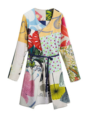 靜謐的東方色調(diào)與沖撞的西方色彩,精致的東方圖案與抽象的西方圖案,所有這些元素一起作用于真絲、高級(jí)棉、羊毛、羊絨、混紡、薄羊皮、涂層等極具藝術(shù)表現(xiàn)力的面料之上,在“多一分則多、少一分則少”的細(xì)膩剪裁間,2010秋冬,時(shí)尚大師杜福爾讓鄂爾多斯時(shí)裝變身為可穿著的藝術(shù)。