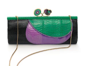 看出包扣是什么了嗎?沒錯,眼睛,還是眼睛!這正是Party系列的點睛之筆。出席晚宴或派對,只需以這樣一款出色的晚宴包來搭配簡約禮服,便能瞬時謀殺菲林無數(shù)。三款魅力十足的晚宴包,無不乖張靈動,華麗的蛇皮鑲邊,金色、黑色、粉色、紫色等的心機搭配,挑戰(zhàn)著你的視覺品味。想要在Party上來點不一樣的感覺,就信心滿滿地帶著它去盡情炫耀吧!