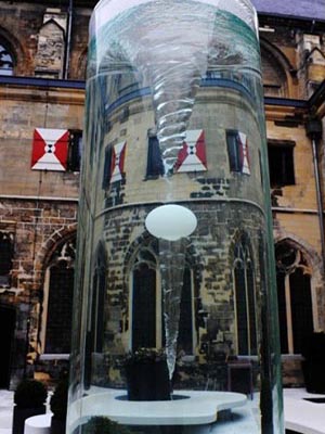 原來(lái)教堂的中庭,外面一座玻璃水柱不知其用途,走近,突然原本靜止的水柱里面水面翻騰起來(lái),從頂端開(kāi)始出現(xiàn)一個(gè)漩渦,不停旋轉(zhuǎn),看樣子里面大有玄機(jī),不一會(huì),一個(gè)白色的圓球在水柱的旋轉(zhuǎn)中逐漸降下,漩渦越來(lái)越大,這個(gè)裝置竟然是感應(yīng)的,只有當(dāng)有人過(guò)來(lái)時(shí),水柱才會(huì)轉(zhuǎn)動(dòng),也許只是個(gè)裝飾吧。